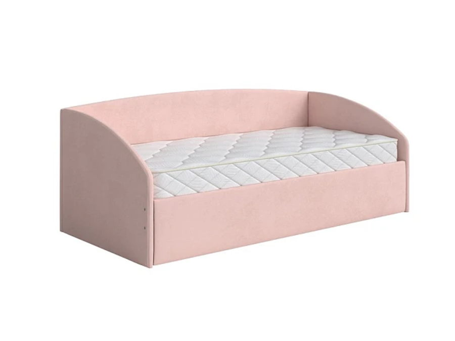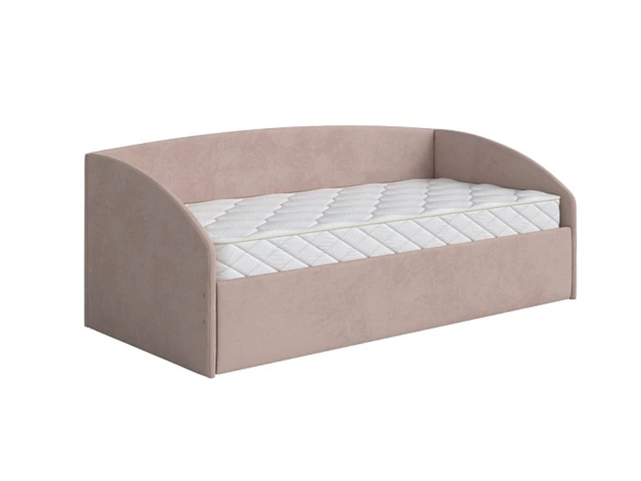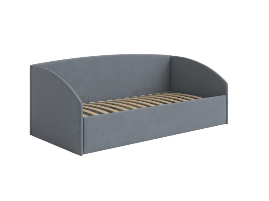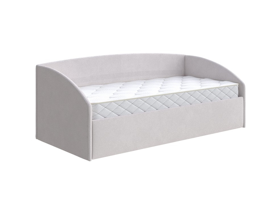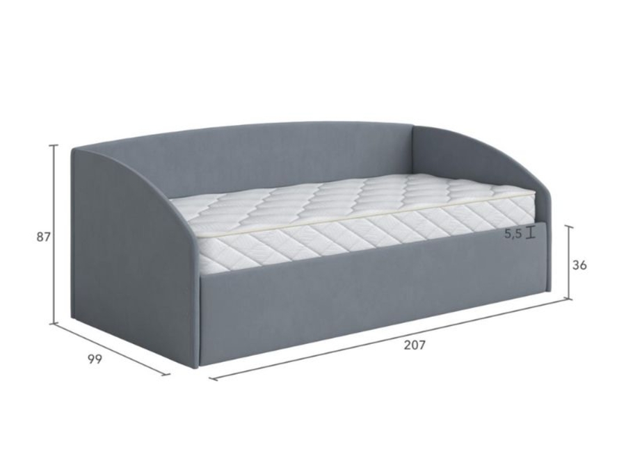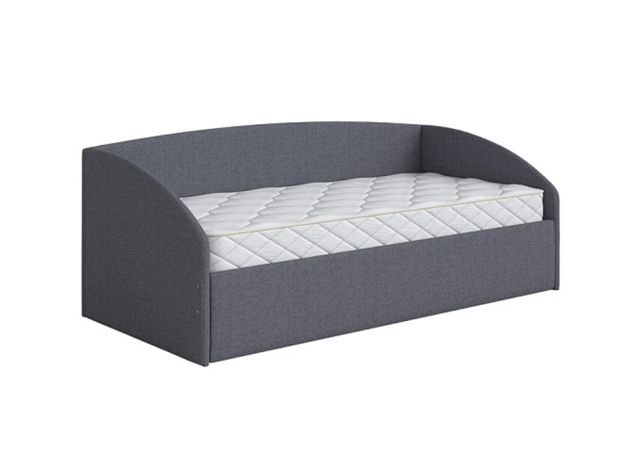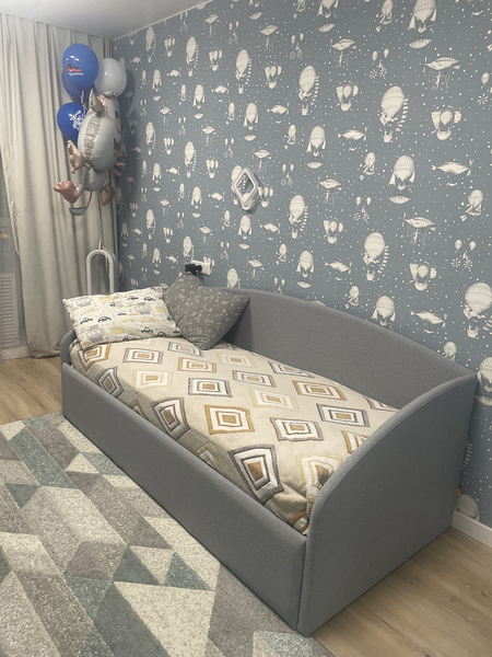 Кровать из мебельной ткани выполнена в виде софы.