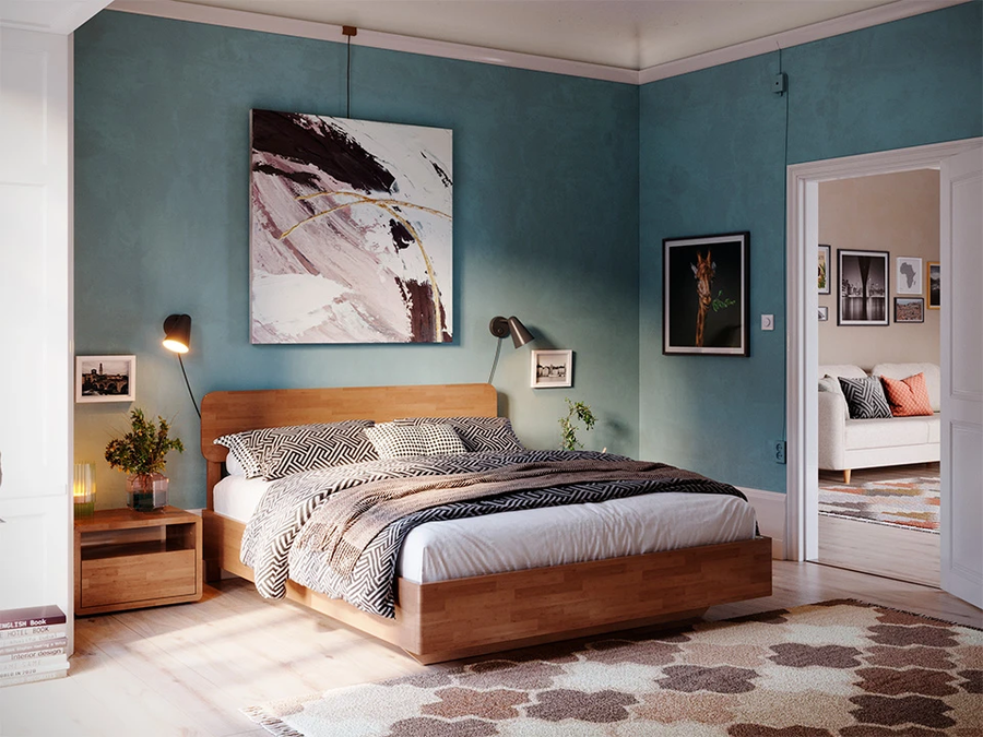 • Парящий царговый пояс визуально увеличивает пространство спальни, добавляет «воздуха» в интерьере.